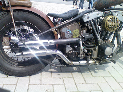 sik (greaseheadquarters) kick's his bike in the morning after the party...he felt the beers and short bedtime